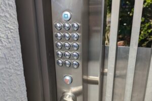 電気錠を取り外し機械式テンキー錠への取替依頼 既設の門扉をそのまま使い機械式テンキー錠 キーレックス4000を取り付ける工事です。 縦框の幅が足らないのでステンレスで囲いを作り扉に固定することで必要な幅を作り出します。 […]